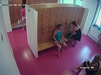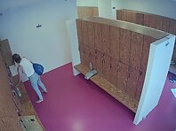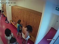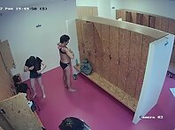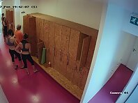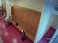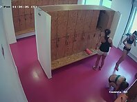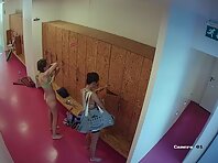 There are many girls in the dressing room. After playing sports, it is good to take off your clothes and go to the shower. But it's even better to watch the girls doing it.