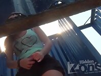There is one place between the stones where it is convenient to get out of the water. When the girls use this passage, they get great shots. Wet tits and pussy look very sexy!