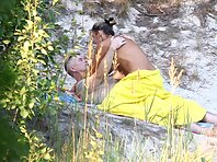 We again returned to the pair, which caresses each other. The girl stood next to them so she could better see what was happening there. These sexual games interested many on the beach.